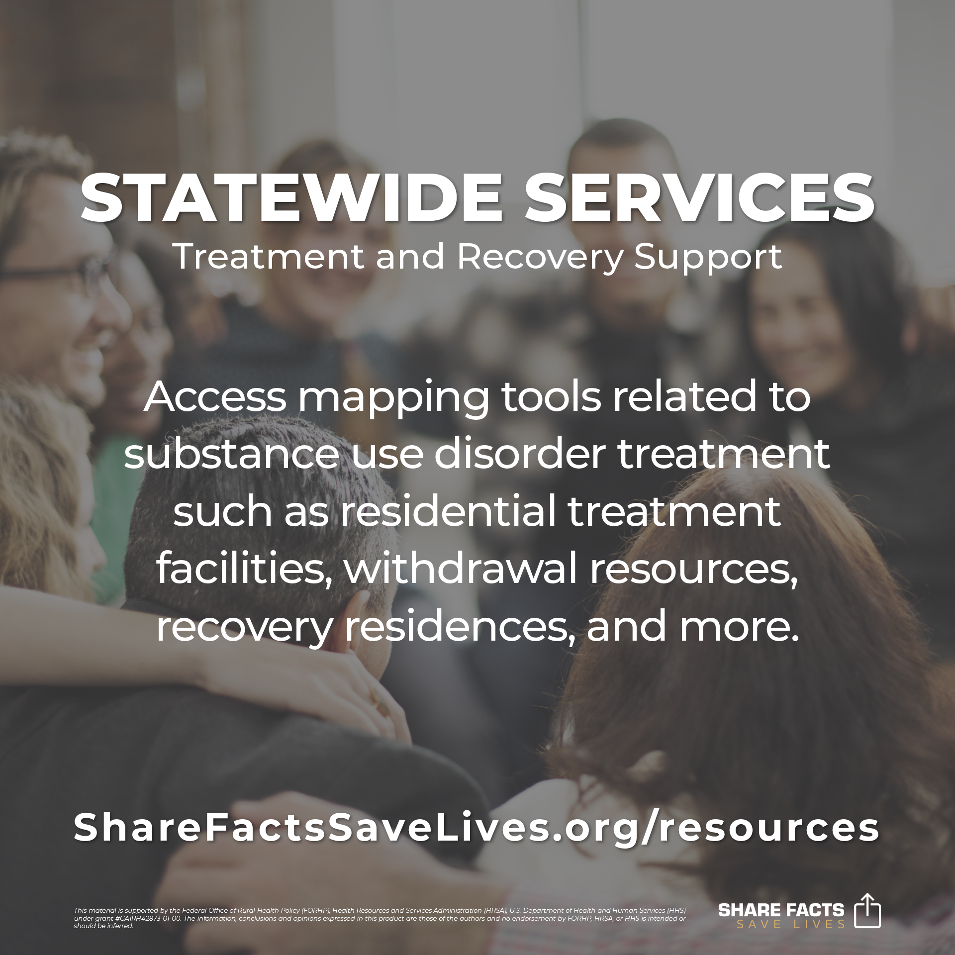 Access to mapping tools related to SUD treatment, such as residential treatment facilities, withdrawal resources, recovery residence options, and more.