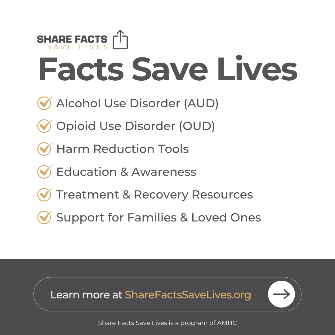 Support the Share Facts Save Lives campaign with shareable content. These materials can be used to educate and create a path towards recovery.