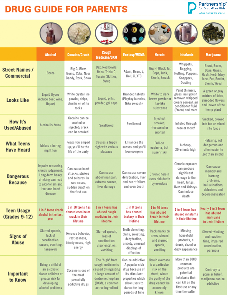 Information including drug descriptions, street names, risks, and what your child may have heard about them to inform and support your conversations with your children.